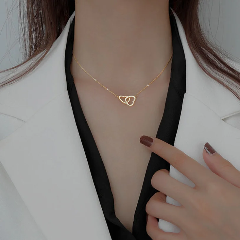 316L Stainless Steel New Fashion Upscale Jewelry Interweave Love Heart Lovers Charms Chain Choker Necklaces Pendants For Women