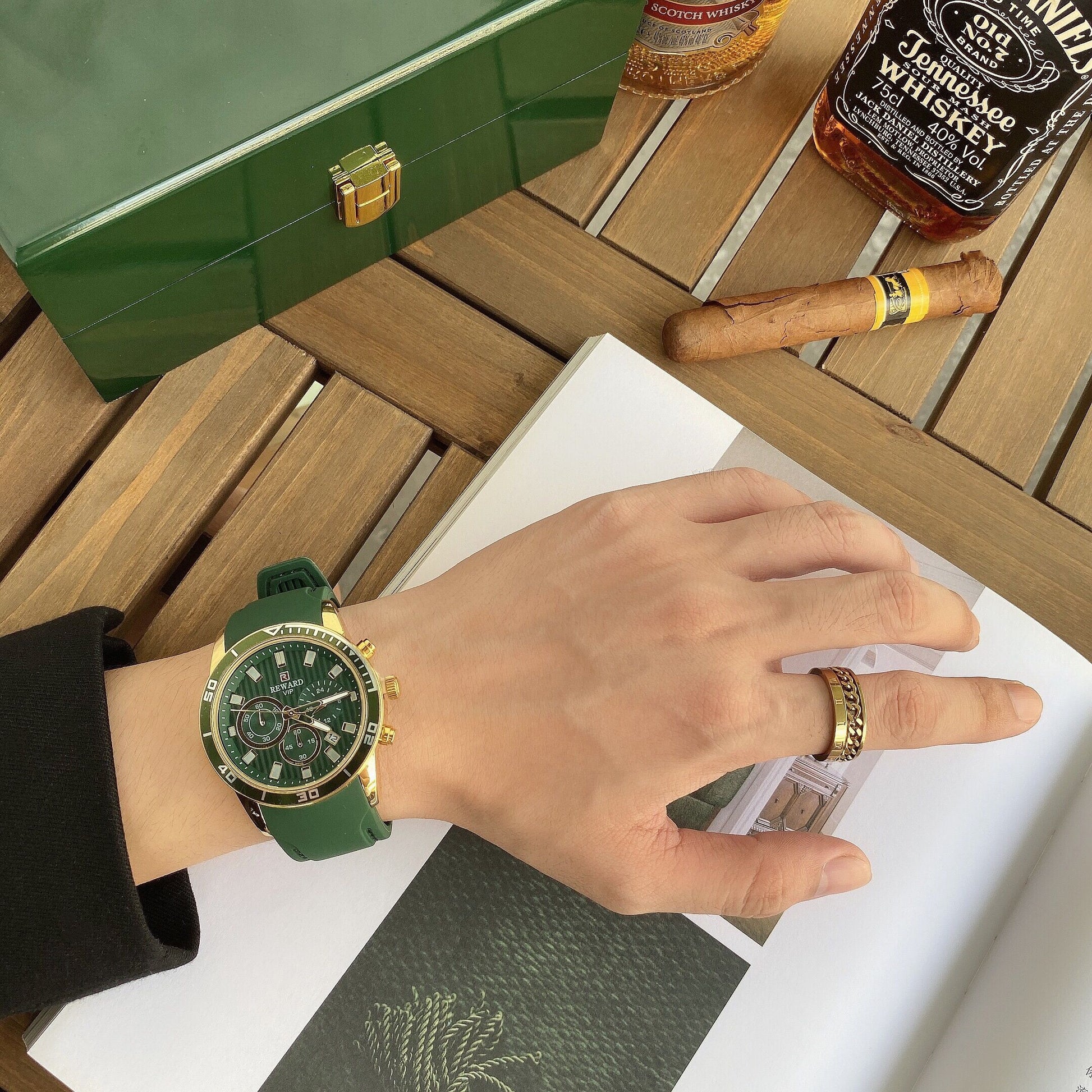 REWARD-Watch Men's Silicone Belt Mori Malachite Green Phnom Penh Three Eyes Luminous Calendar
